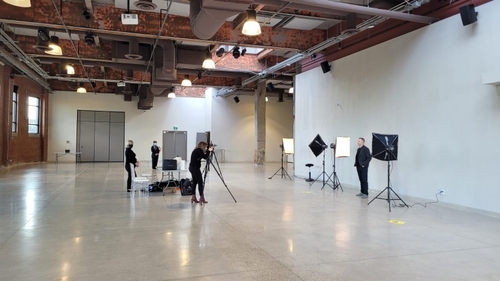 First, you make health and safety the number one priority. Next, you rent an 8,000 square foot warehouse with good air movement and ample interior volume to create the environment for the day. After you plan entrance and exit routes that don't conflict, you create a check-in protocol complete with a touch-free screening questionnaire. Next, you set up your stage with ample distance between photographer and subject, mark the floor with social distance decals and send out invitations with time between appointments to keep all forty members of the team safe and secure.